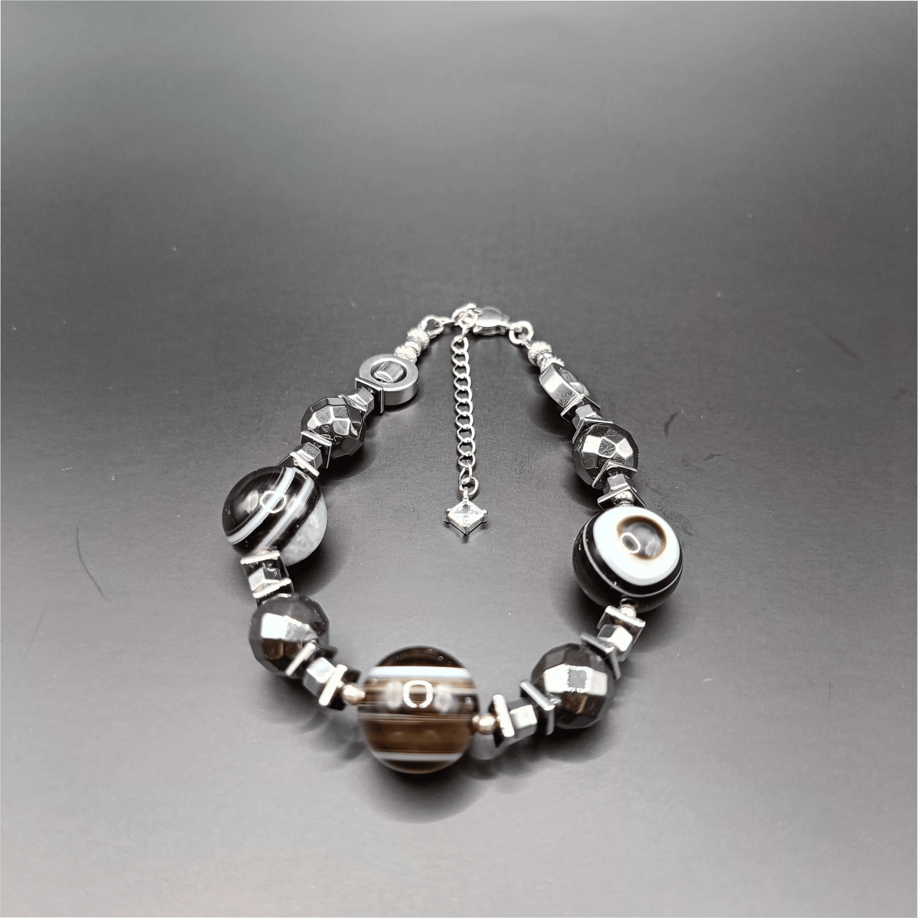 Браслет выполнен из натурального черного агата в огранке.