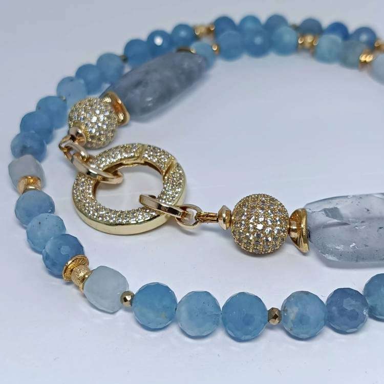 Колье "Чистота океана" - аквамарин и горный хрусталь