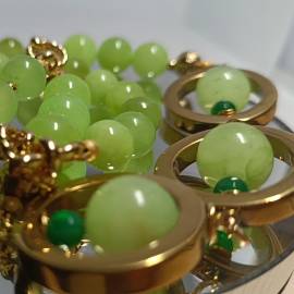 Бусины зеленого оникса, расположенные у замка меньше по размеру, но обладают более насыщенным зеленым цветом.